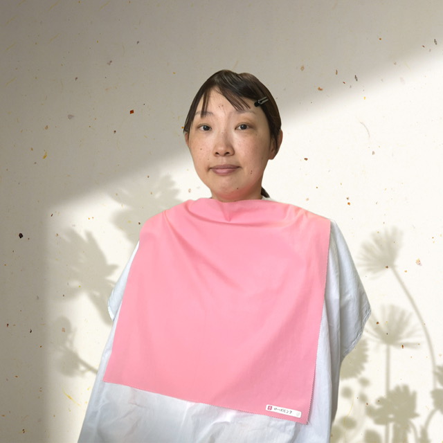 ドレープをお顔の下にあててお写真を撮っていただきます